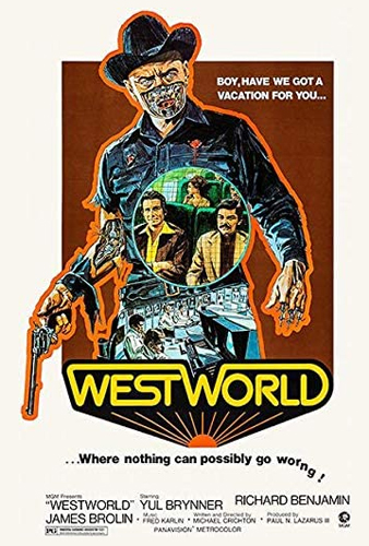 In late 1984, BBC2 screened a short season of science fiction films under the umbrella title Future Tense that made a strong impact on my teenage self. As a child of the Star Wars generation and with the original trilogy heading off into the sunset (with no certainty that it’d ever return), I started to explore Hollywood’s rich back catalogue of futurist cinema and this season of films was a natural starting point. For many years, I couldn’t remember exactly which films made up the season; my memory was largely based on a TV trailer that I had a copy of for many years. Placed on a Sony E-180 Betamax tape between a pirate copy of E.T. and a couple of episodes of Blake’s 7, the trailer showed clips from Westworld, Dark Star, Demon Seed, Logan’s Run and The Man Who Fell to Earth, set to a groovy piece of library music and ending with a BBC announcer gleefully declaring, “Robots on the rampage…” as he introduced the broadcast of Westworld to start the season.
