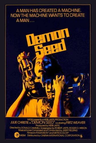 Skipping over 1980’s Deathwatch, which I haven’t been able to locate a copy of, we have the 1977 film Demon Seed, based on the novel of the same name by Dean Koontz. The story tells of a revolutionary artificial intelligence PROTEUS IV, which becomes obsessed by the wife of its creator, played by Julie Christie, imprisoning her in the house and even trying to develop a way of reproducing with her. At its heart, it’s a pretty grim story of abduction and imprisonment, only with a computer as the villain of the piece instead of a human being. It’s attractively directed by Donald Cammell, whose previous film was Performance almost 10 years earlier and coincidentally co-directed with Nicholas Roeg, the director of The Man Who Fell to Earth. Demon Seed was released just over a month before Star Wars and, like a lot of science fiction films made around that time, was swept aside by the tidal wave of popularity that surrounded George Lucas’ space opera saga and quickly disappeared from cinemas.